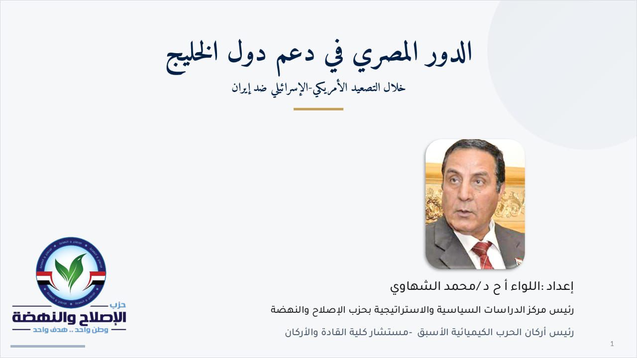 إعداد: اللواء أ ح د/ محمد الشهاوي ●رئيس مركز الدراسات السياسية والاستراتيجية بحزب الإصلاح والنهضة ●رئيس أركان الحرب الكيميائية الأسبق بالقوات المسلحة ●مستشار كلية القادة والأركان وعضو المجلس المصري للشؤون الخارجية