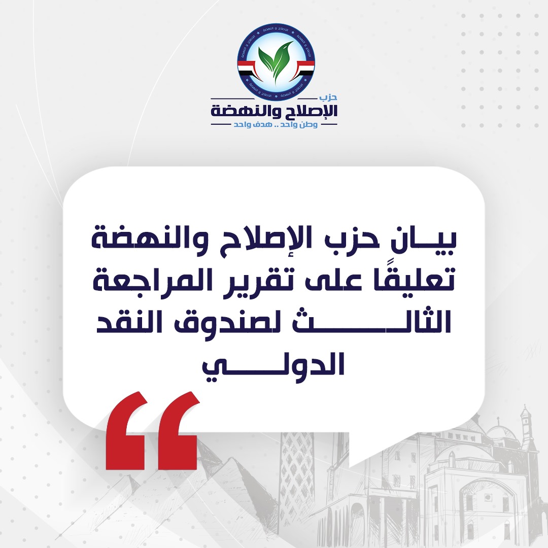 بيان حزب الإصلاح والنهضة تعليقًا على تقرير المراجعة الثالث لصندوق النقد الدولي.