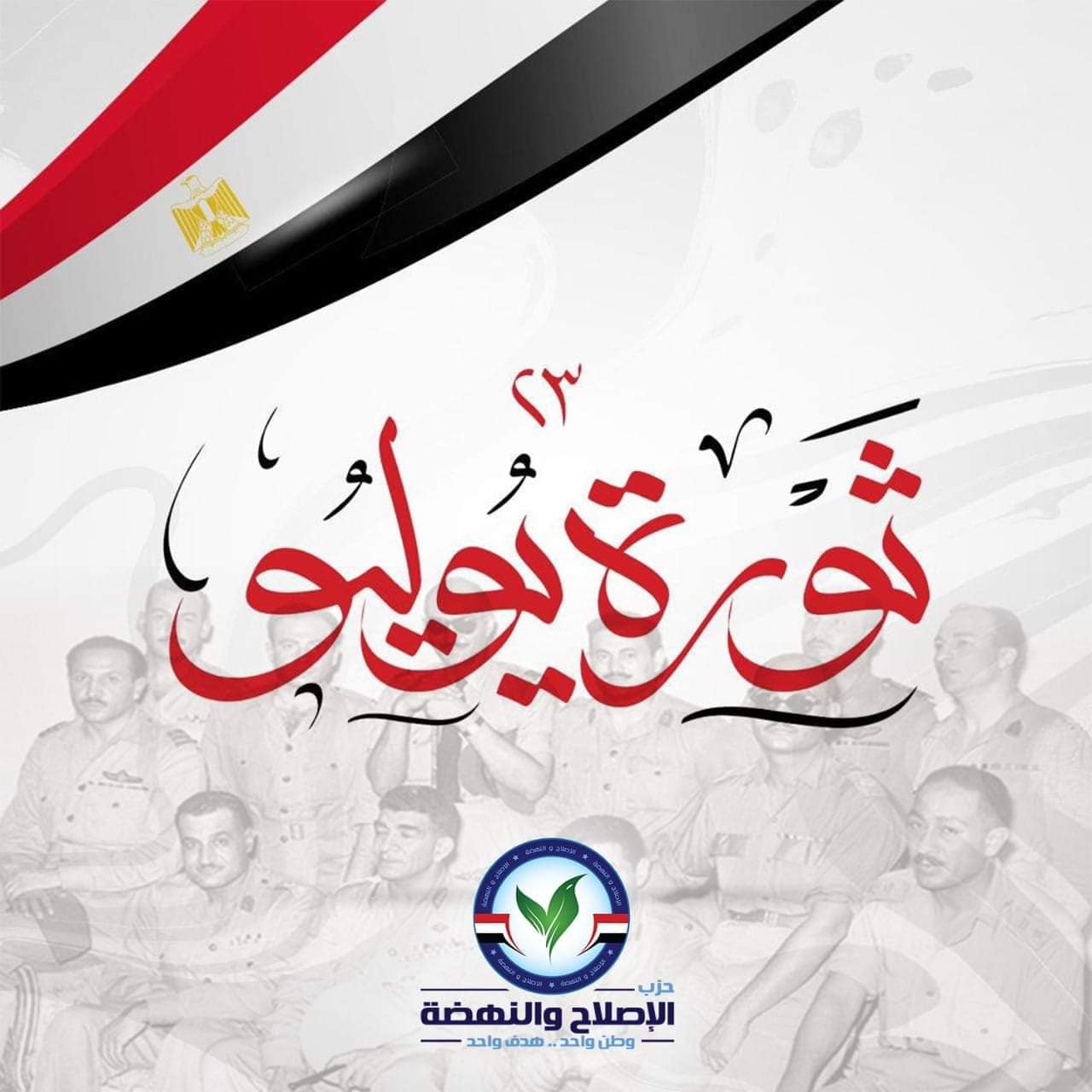 بيان حزب الإصلاح والنهضة بمناسبة الذكرى الـ 72 لثورة يوليو المجيدة